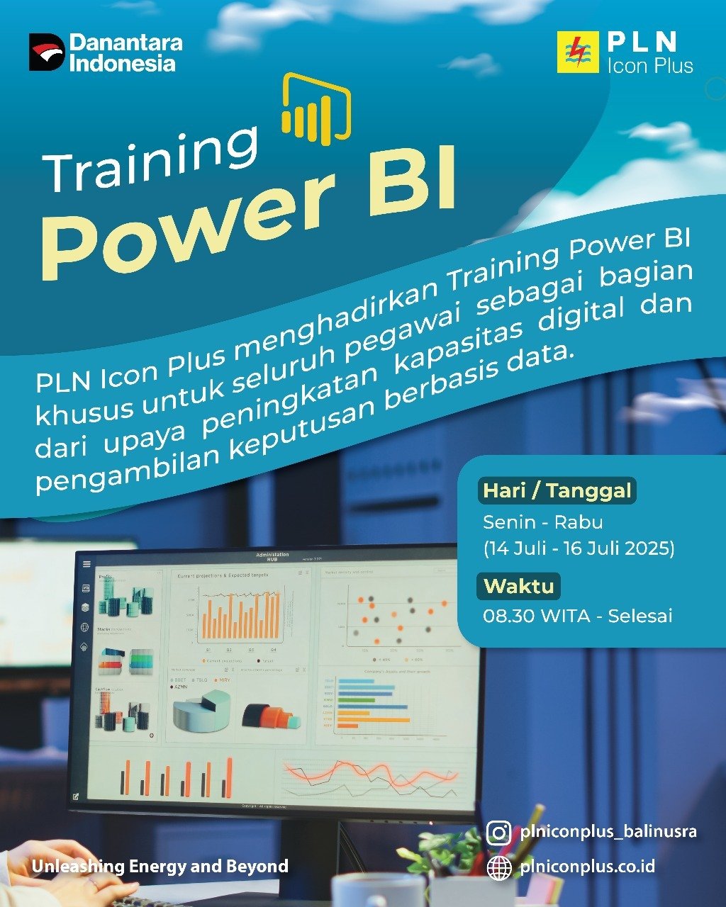 Denpasar, Juli 2025 – Dalam rangka memperkuat kompetensi digital dan mendorong budaya kerja berbasis data, pegawai PLN Icon Plus SBU Regional Bali dan Nusa Tenggara mengikuti pelatihan penggunaan Microsoft Power BI. Kegiatan ini merupakan bagian dari komitmen perusahaan untuk terus meningkatkan kapasitas sumber daya manusia dalam menghadapi tantangan transformasi digital.